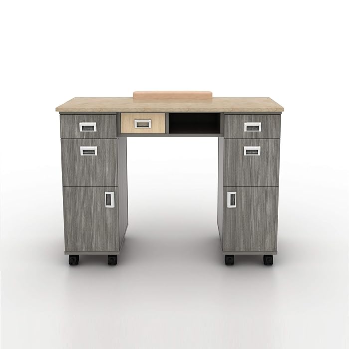 Buy Alera Manicure Nail Table With Granite Top Gray Wood Grain Color Nail Table With Wrist Rest And Storage Drawers Online At Desertcart South Africa
